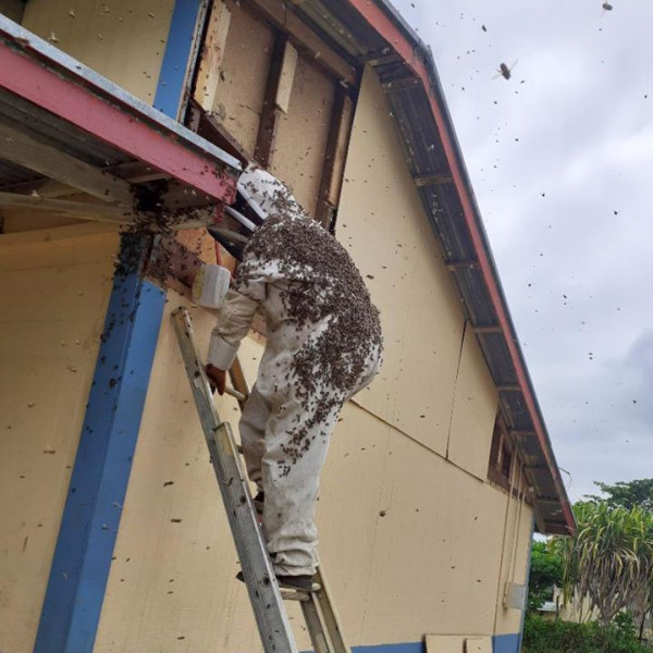 “People would ring up and say, I’ve got bees in my ceiling, can you come and get them’, he says. “We’d go and rip the walls down, get the bees and their combs out, get them into hives and move them. One colony came from the roof of the Royal Villa which was built by His Late Majesty King Tupou V and is currently used for guests of the Royal Family including more recently the Duke and Duchess of Sussex. We had to have a cherry picker to get up there.