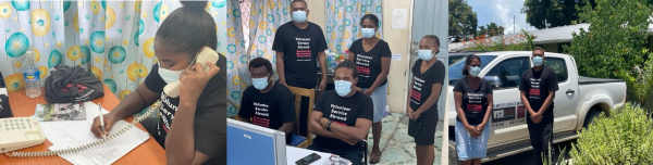 VSA Programme Manager, Shupayi Mpunga-Direen (Shu), has also been working with the National Health Emergency Operation Centre (NHEOC) to understand how teams work, and provide support to achieve efficient processes and procedures in this changing environment. “NHEOC has a team of committed staff who are doing their best to take care of themselves and others, and to ensure that residents are given the information they need at the right time. There are really important infection prevention and control measures that have been put in place to keep staff and volunteers safe and it’s so cool that VSA can be part of this.” says Shu. "They just make my day. So positive and always smiling. It feels really good to walk into the call centre and see them hard at work on the phones."