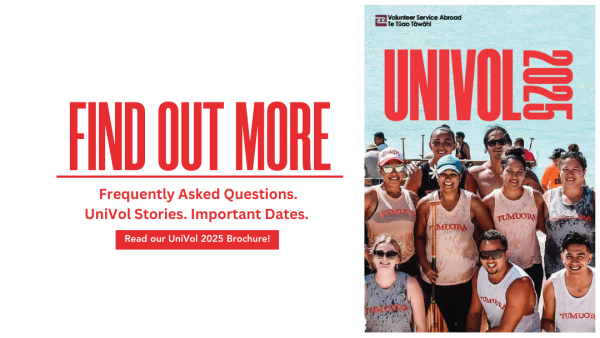 The Univol programme is a collaboration between VSA and New Zealand tertiary education institutions. If you are accepted into the programme you will be offered a 10-month placement overseas with one of VSA’s partners, beginning in early 2025.